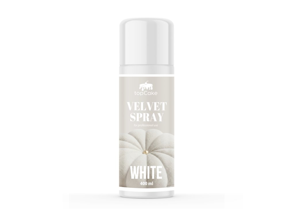 Doprajte svojim dezertom výnimočný vzhľad a nechajte ich zažiariť dokonalým zamatovým efektom. topCake velvet sprej Biely je profesionálny cukrársky sprej, ktorý mení obyčajné torty a dezerty na vizuálne pôsobivé cukrárske diela. Je určený pre všetkých, ktorí chcú spojiť precíznu dekoráciu, moderný dizajn a luxusný vzhľad.