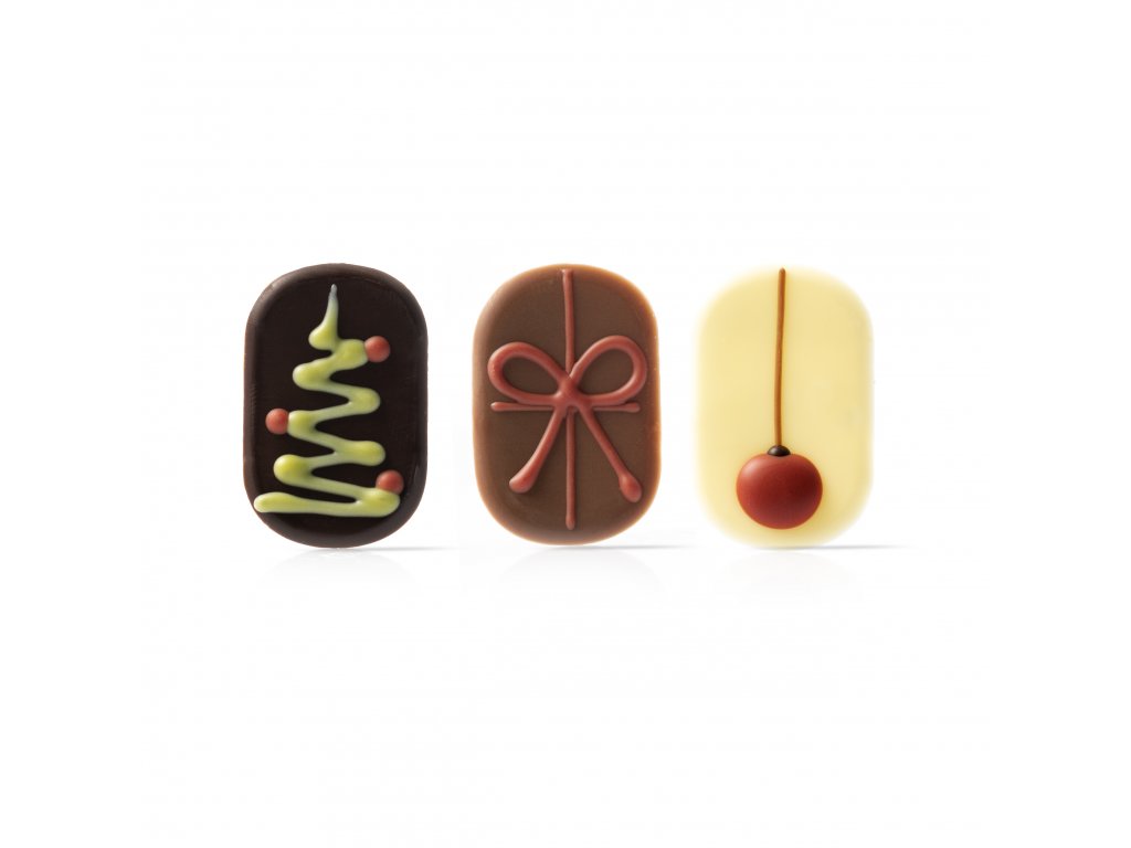 ČOKOLÁDOVÁ DEKORÁCIA VIANOČNÝ SORTIMENT BEZ E171 189KS 40X25MM (77794)