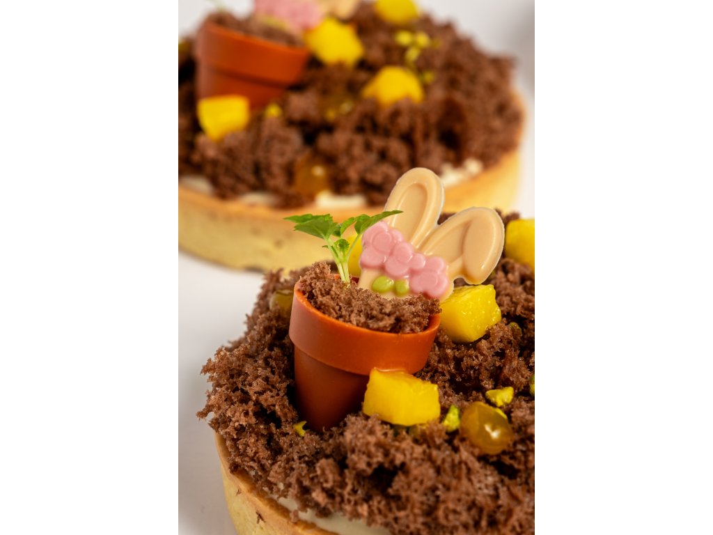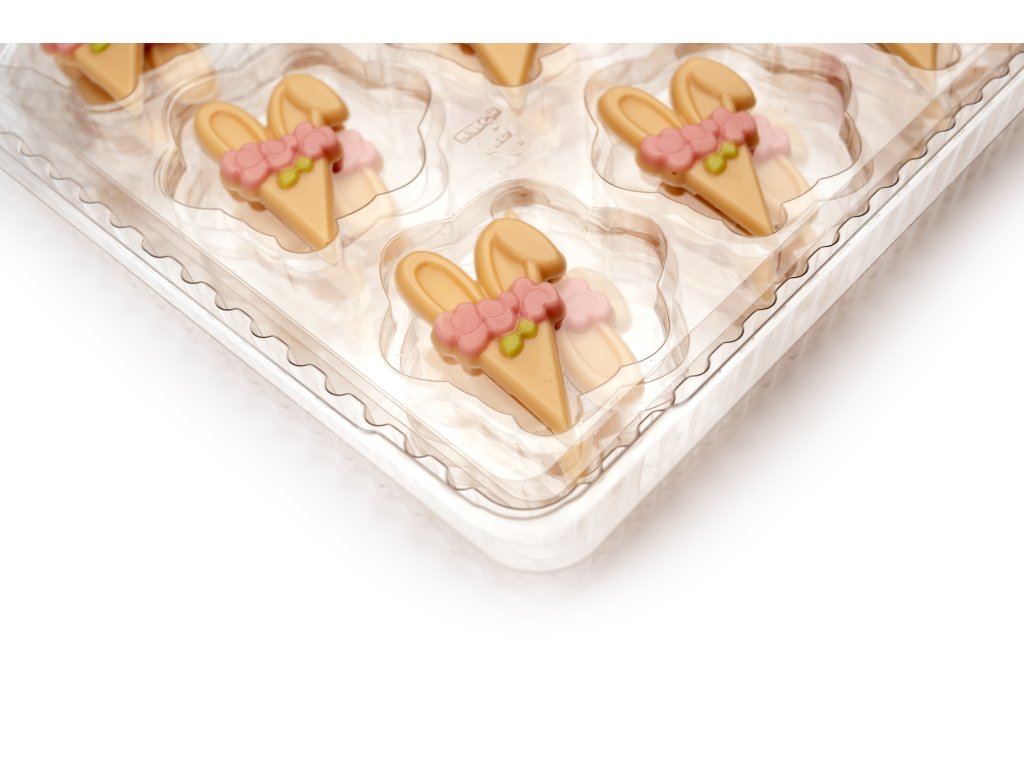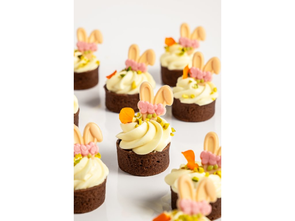 Čokoládová dekorácia Zajačie uši s kvetom ti umožní rýchlo a jednoducho ozdobiť torty, cupcakes alebo koláče. Stačí dekoráciu položiť na pripravený dezert alebo ju zakomponovať medzi zákusky a torty. Každé uško dodá sladkostiam originálny, profesionálny a hravý vzhľad s veľkonočnou atmosférou. Figurky sú praktické, ľahko použiteľné a vytvoria detail, ktorý okamžite zaujme a spraví tvoje výtvory ešte lákavejšími. Ideálne pre cukrárov a pekárov, ktorí chcú svojim dezertom dodať efektný a elegantný dotyk bez zložitej práce.