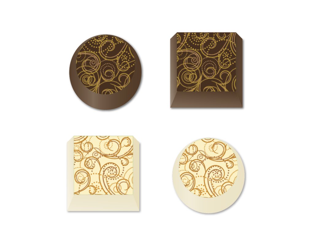 Čokotransfer Elegance je transferová fólia určená na prenos dekoratívneho ornamentálneho vzoru na povrch čokolády. Tento čokotransfer je ideálny na zdobenie čokoládových praliniek, čokoládových tabuliek a čokoládových dekorácií na torty a dezerty, pričom umožňuje dosiahnuť precízny a profesionálny výsledok bez potreby ručného maľovania. Použitie čokotransferu spočíva v priložení fólie potlačenou stranou na správne temperovanú čokoládu, jej zatuhnutí a následnom odstránení fólie, vďaka čomu sa ornamentálny vzor prenesie priamo na povrch čokolády. Elegantný a nadčasový dizajn robí tento čokotransfer vhodným riešením pre luxusné, slávnostné a svadobné dezerty, kde je kladený dôraz na detail, eleganciu a kvalitné čokoládové spracovanie.
