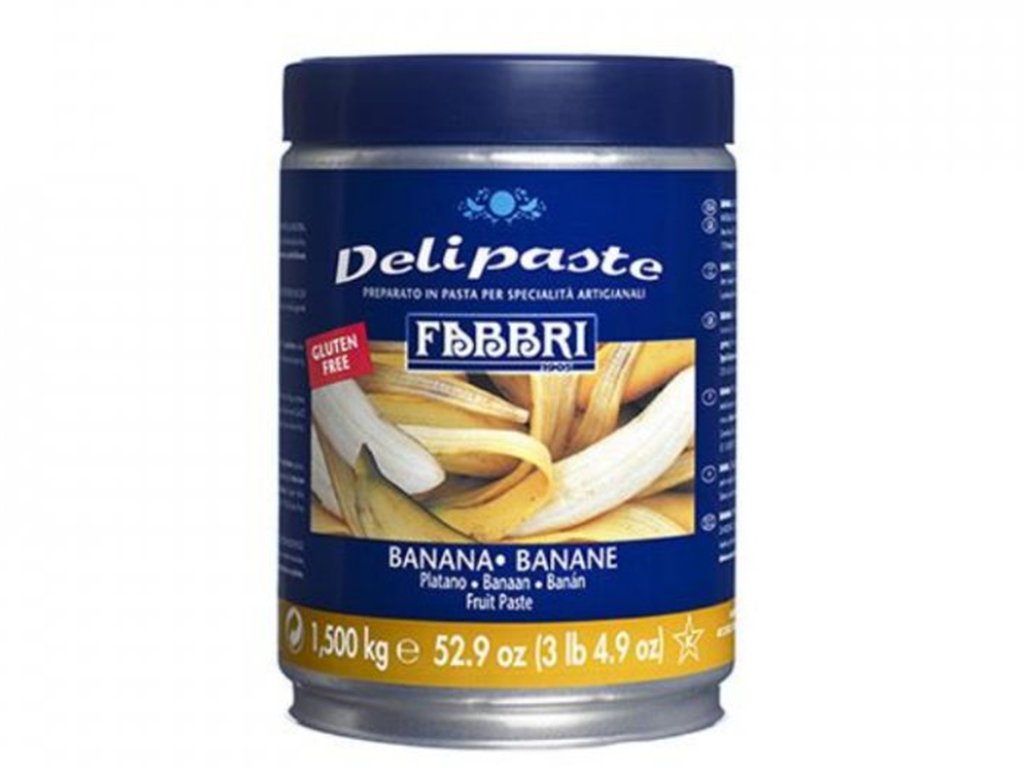 Koncentrát s príchuťou banán vo forme pasty, určený na dochucovanie zmrzlinového základu v zmrzlinárskej výrobe a na dochucovanie nápní a krémov v cukrárskej výrobe. #zloženie#F BANÁN PASTA 9225759 1,5 KG Koncentrát vo forme pasty, určený na dochucovanie zmrzlinového základu v zmrzlinárskej výrobe, náplní a krémov v cukrárskej výrobe. Zloženie: Cukor, Banánové pyré (38%), Kyselina citrónová, Prírodná aróma, Stabilizátor - E440 Pektíny. Distribútor: Ekvia s.r.o., Priemyselná 11, 949 01 Nitra, Slovensko. Návod na použitie / dávkovanie: 70 - 100 g zmrzlinovej pasty/1 l hotového zmrzlinového základu. Vhodné pre výrobu zmrzlín, v potravinárskom priemysle. Skladovanie: Suchý sklad - Teplota: max 25 °C - Relatívna vlhkosť vzduchu: 65 % až 70 %. Skladovať pri izbovej teplote. Skladovanie po otvorení: Chladený sklad - Teplota: + 2 °C až + 6 °C - Relatívna vlhkosť vzduchu: 80 % až 95 % Identifikácia výrobnej dávky: viď obal. Minimálna trvanlivosť do: viď obal. Hmotnosť: 1,5 kg. Výživové údaje na 100 g: Energia 1161 kJ/273 kcal. Tuky <0,5 g; z toho nasýtené mastné kyseliny <0,1 g. Sacharidy 67 g; z toho cukry 65 g. Vláknina <0,5 g. Bielkoviny <0,5 g. Soľ 0,01 g.#zloženie#Dodatočné parametre