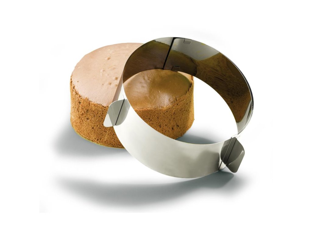 Materiál: nerez. Výška formy: 14,5 cm. Priemer: nastaviteľný od 16 do 30 cm.