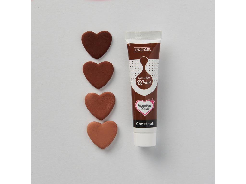 Gélová farba RD ProGel Chestnut (hnedá) je profesionálna potravinárska gélová farba na torty, určená pre cukrárov aj domácich nadšencov pečenia. Vďaka vysokej koncentrácii farbiva postačí len malé množstvo na dosiahnutie intenzívnej a rovnomernej hnedej farby bez ovplyvnenia chuti dezertov.