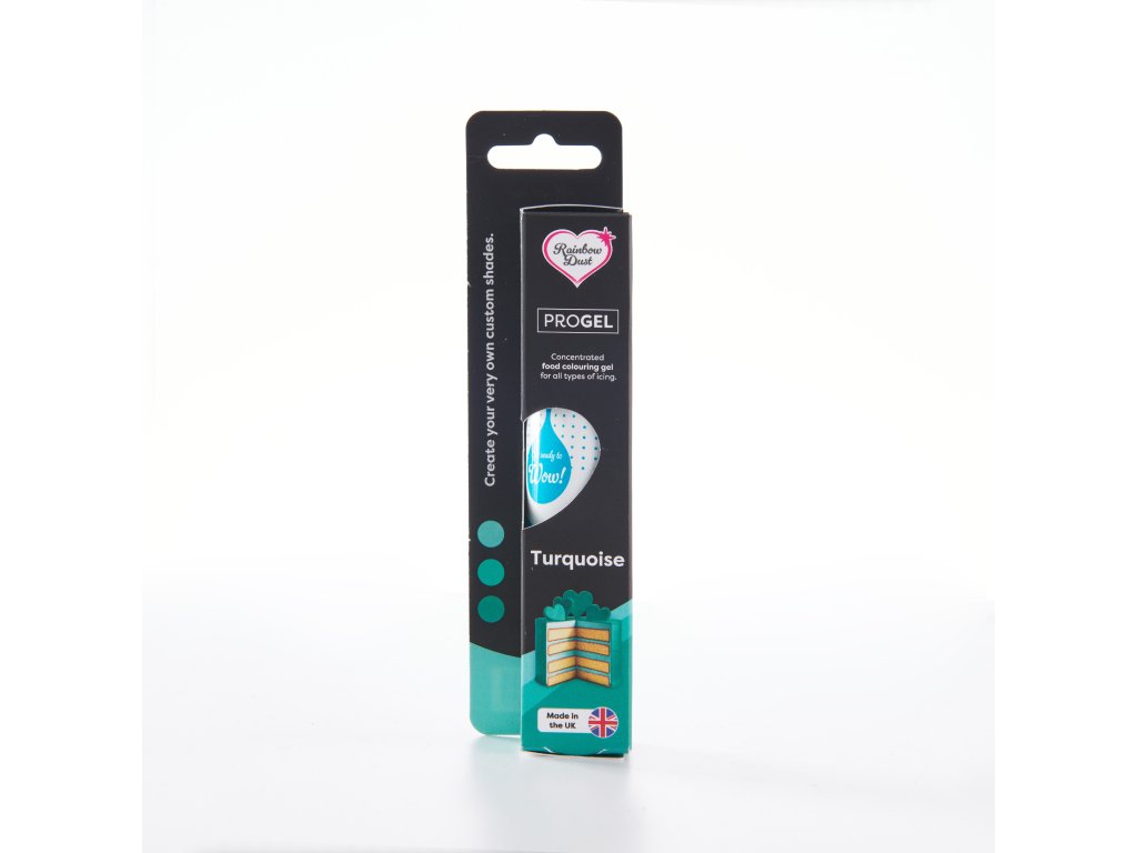 Gélová farba RD ProGel Turquoise (tyrkysová) je profesionálna potravinárska gélová farba na torty, určená pre cukrárov aj domácich nadšencov pečenia. Vďaka vysokej koncentrácii farbiva postačí len malé množstvo na dosiahnutie intenzívnej a rovnomernej tyrkysovej farby bez ovplyvnenia chuti dezertov.