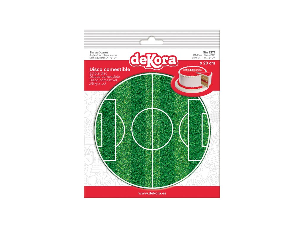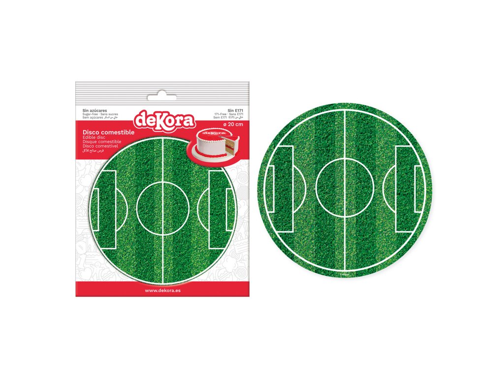 Jedlý obrázok futbalové ihrisko kruh 20 cm. Zloženie: škrob; sladidlo: E965; stabilizátor: E460i; zahusťovadlo: maltodextrín; zvlhčovadlo: E422; stabilizátory: E414, E466; emulgátor: E433; konzervačné látky: E330, E202; sladidlo: E955; aróma; farbivá: E122, E133, E102, E151. E122, E102 môže mať nepriaznivé účinky na činnosť a pozornosť detí. Distribútor: Dekora Innova, S.A.U., Buzón 95, 03114 Alicante, Španielsko. Návod na použitie / dávkovanie: . V cukrárstve. Skladovanie: Teplota: min. 22.0°C, max. 25.0°C. Relatívna vlhkosť vzduchu 45%. Identifikácia výrobnej dávky: viď obal. Minimálna trvanlivosť do: viď obal.