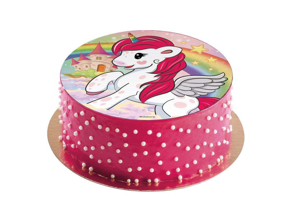 Jedlý obrázok Jednorožca ozdobí každú tortu. Podklad môže byť krém alebo fondant.