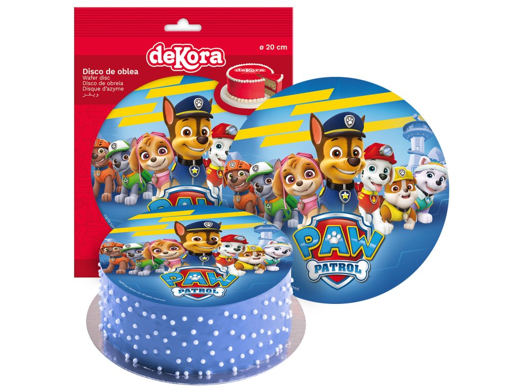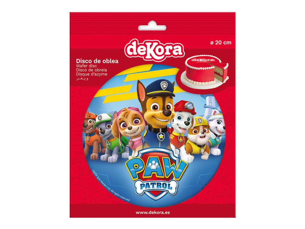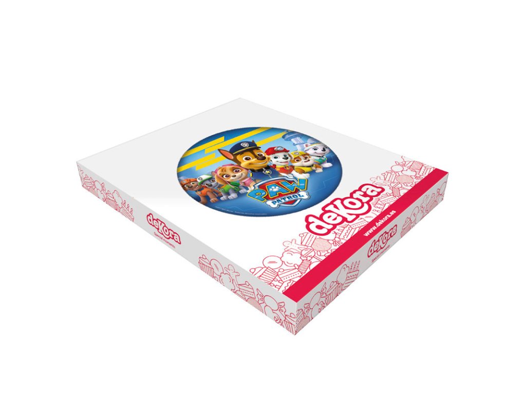 Jedlý obrázok Paw Patrol kruh 20 cm. Zloženie: zemiakový škrob; voda; rastlinný olej (olivový); zahusťovadlo: maltodextrín; farbivá: E122, E133, E102, E151. E122, E102 môže mať nepriaznivé účinky na činnosť a pozornosť detí. Distribútor: Dekora Innova, S.A.U., Buzón 95, 03114 Alicante, Španielsko. Návod na použitie / dávkovanie: . V cukrárstve. Skladovanie: Suchý sklad - Teplota: max 25 °C - Relatívna vlhkosť vzduchu: 65 % až 70 %.Teplota: min. 22.0°C, max. 25.0°C. Relatívna vlhkosť vzduchu 45%. Identifikácia výrobnej dávky: viď obal. Minimálna trvanlivosť do: viď obal.