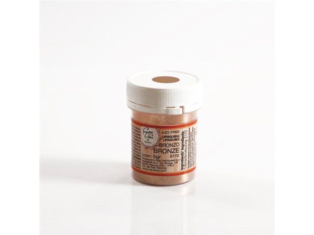 #zloženie#PRACHOVÁ FARBA PERLEŤOVÁ BRONZOVÁ 5G Prachová farba určená na potraviny. Zloženie: farbivo: E172. Môže obsahovať: SÓJOVÉ BÔBY, MLIEKO, OXID SIRIČITÝ A SIRIČITANY. Alergény sú v zložení ZVÝRAZNENÉ. Distribútor: MARTELLATO srl, Via Rovigo, 1/B - 35010 Vigonza PD, Taliansko. Návod na použitie / dávkovanie: Priamo pridajte prášok na zafarbený výrobok alebo ho naneste štetcom na povrch, ktorý sa má ozdobiť.. Výrobok na dekoráciu jedál, najmä cukroviniek a pekárskych výrobkov.. Chráňte pred slnečným žiarením a teplotami nad 50 ° C. Skladujte uzavreté na chladnom a suchom mieste. Identifikácia výrobnej dávky: viď obal. Minimálna trvanlivosť do: viď obal. Hmotnosť: 5 g. #zloženie#