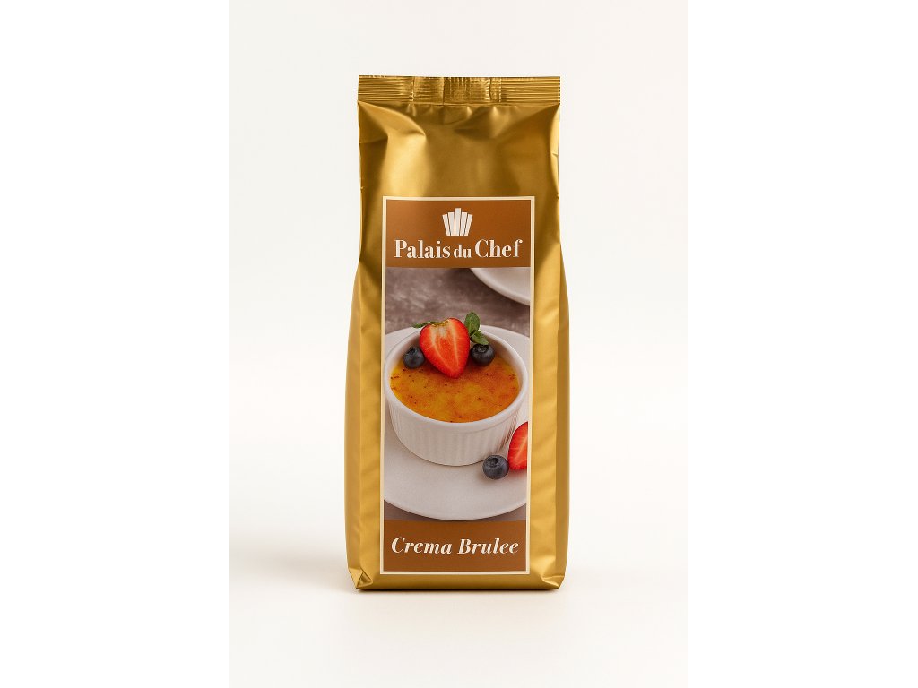 Krémový prášok - polotovar na prípravu dezertu Crème brûlée. Zloženie: cukor; glukózový sirup; sušené MLIEKO odtučnené; maltodextrín; dextróza; kukuričný škrob;