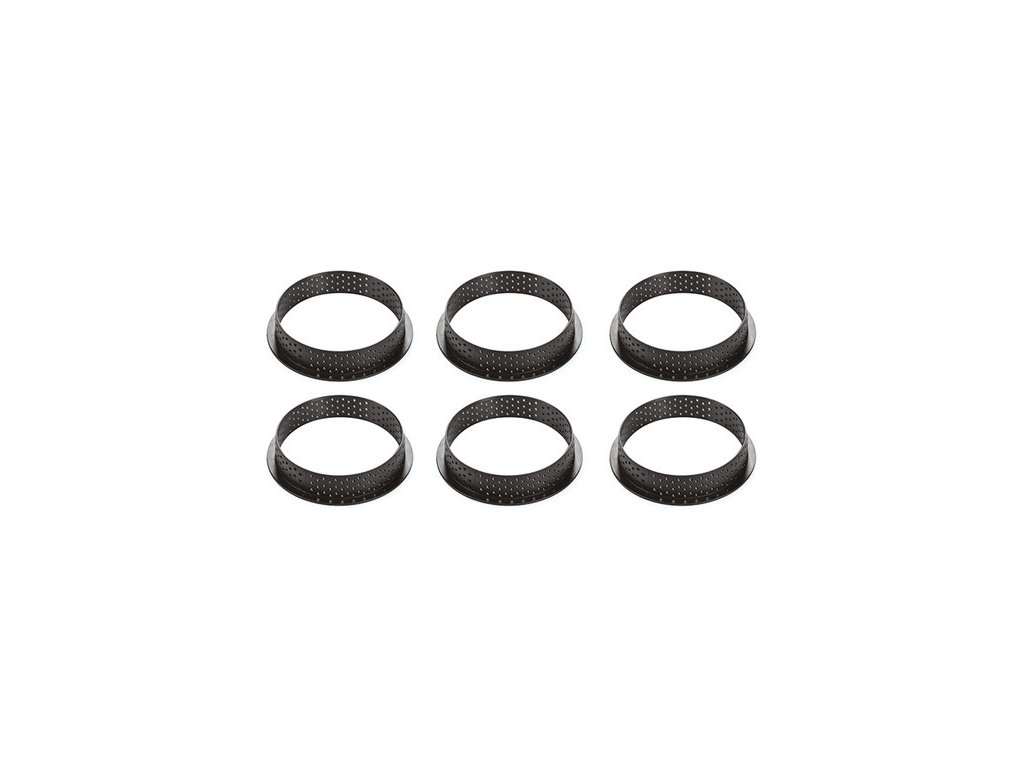 Súprava 6 krúžkov s priemerom 80 mm z termoplastického kompozitného materiálu odolného voči rozdrveniu vhodného na pečenie do 180 °C / 356 °F a vytvárania základne