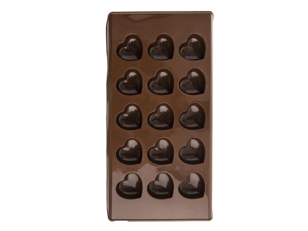Silikónová forma Vám vytrvorí dobroty z čokolády v tvare srdiečok. Materiál: silikón. 15 foriem. Znáša vysoké teploty (od -40 °C do +220 °C), neprenáša chute ani vônu z použitých potravín. Vhodná do umývačky riadu. Môžetš ju využiť tiež ako formu na ľad. Rozmery: 22x11,5x2 cm, srdiečko 3x3 cm.