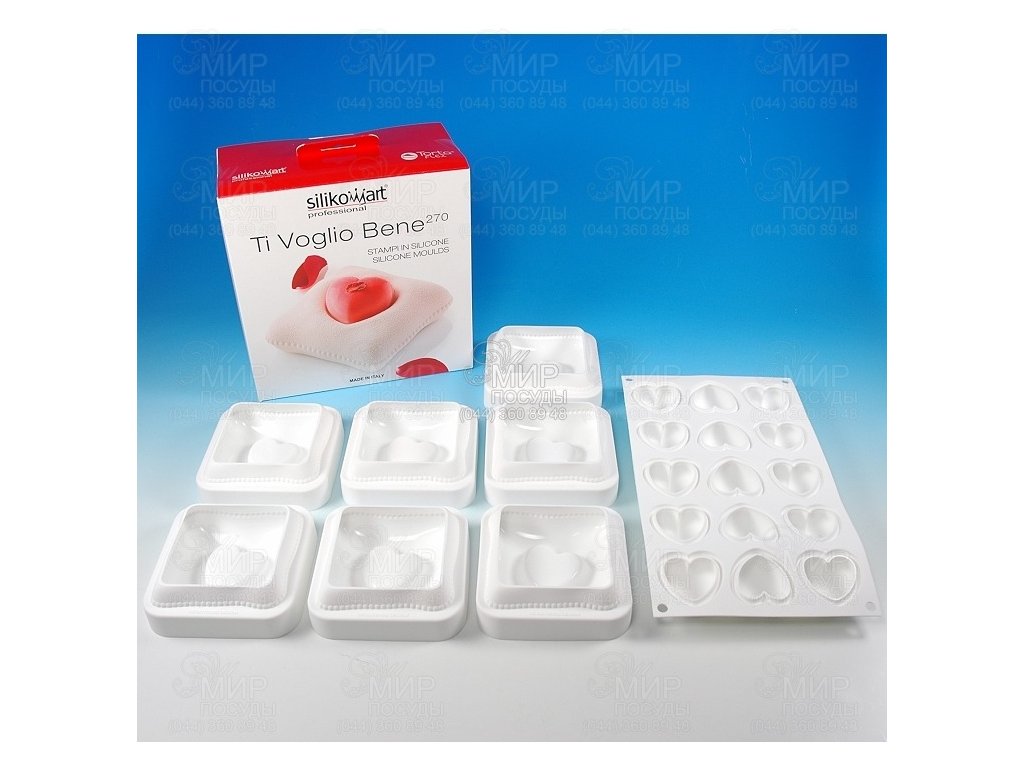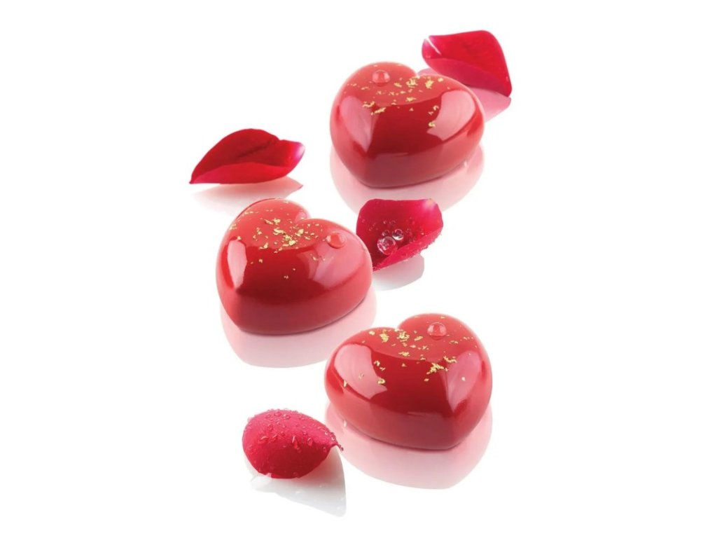 Súprava od Silikomart Professional, navrhnutá pre romantikov, je súpravou spoločnosti Silikomart Professional, ktorá pozostáva zo 7 foriem v tvare vankúša a jednej na výrobu 15 malých výtvorov v tvare srdca: perfektné riešenie na výrobu originálnych dezertov s objemom 270 ml (celkový objem). Malé porcie dokonale ležia na báze vankúšov a vytvárajú výtvory, ktoré dodajú vášmu laboratórnemu oknu jedinečný nádych.