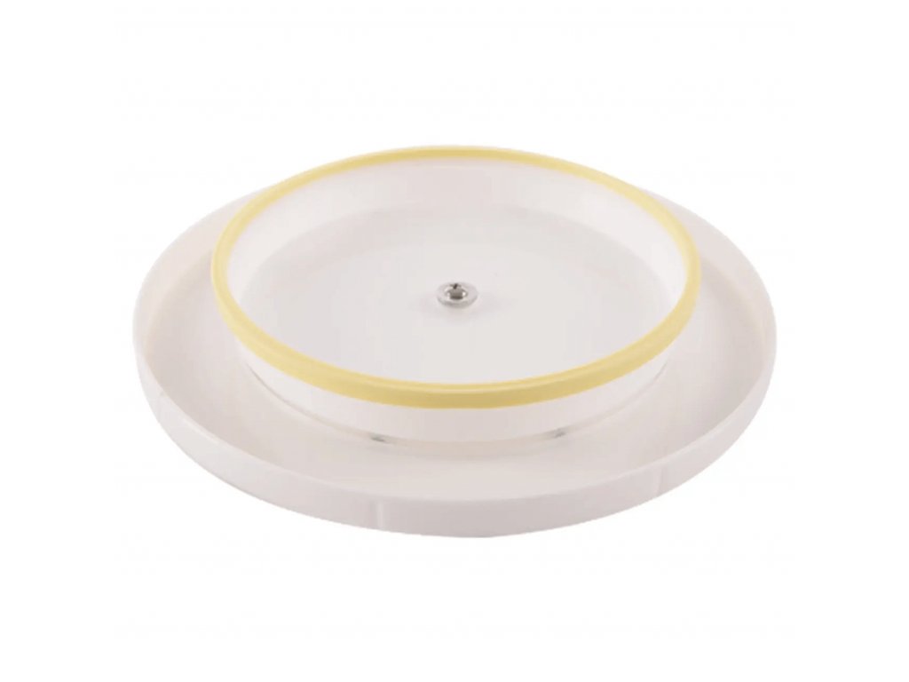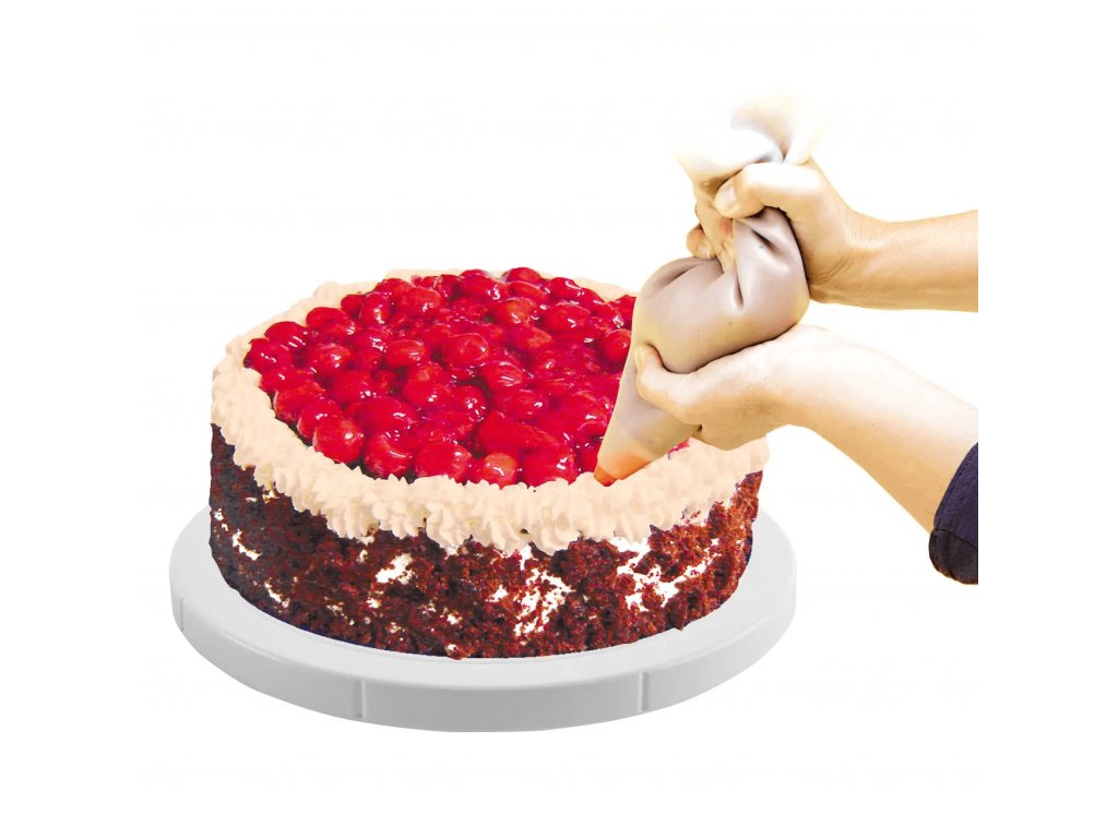 Otočný stojan Vám pomôže tortu ľahko a rýchlo ozdobiť. Vďaka otáčaniu budete mať zdobenie v jednej rovine. Na tácke tortu môžete rovno servírovať. Mateiál: plast. Farba biela. Rozmery: pr. 27 cm, v. 4 cm.