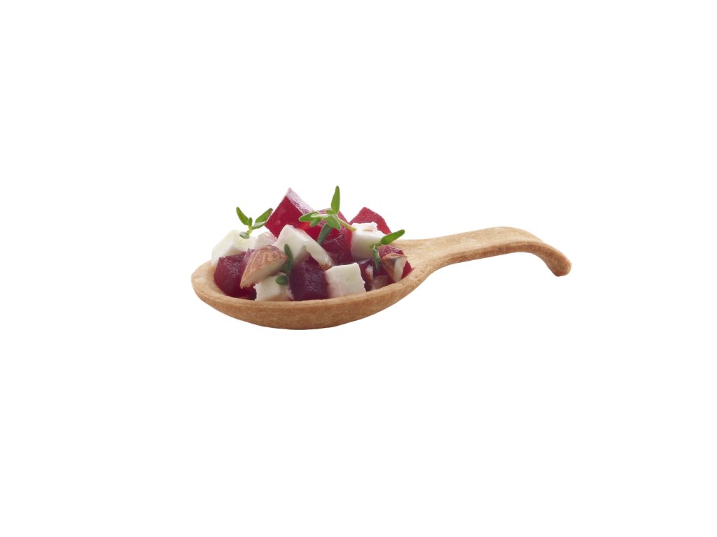 Tapas lyžička v neutrálnom prevedení je štýlový a zároveň funkčný prvok modernej gastronómie. Vyrobená z krehkého cesta na báze pšeničnej múky a vajec, má ideálnu dĺžku 75 mm pre servírovanie jednohubiek bez potreby tanierov a príborov.