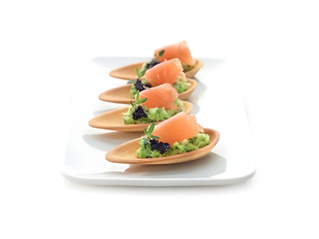 Vďaka neutrálnej chuti je vhodná pre široké spektrum plniek – slané, zeleninové, syrové aj mäsové. Vysoká stabilita zabezpečuje, že udrží aj krémové či vlhkejšie náplne bez prepadnutia alebo nasiaknutia. Mušla sa hodí na rauty, recepcie, ochutnávky aj moderné predjedlá.