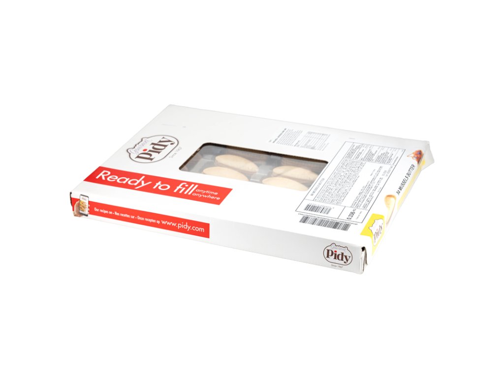 Tapas mušla - neutrálna; 65mm, 84ks . Zloženie: PŠENIČNÁ múka; MASLOVÝ tuk (26%); ryžový škrob; VAJCIA; cukor; soľ; neaktívne droždie, voda. Alergény sú v zložení ZVÝRAZNENÉ. Výrobca: Pidy Production SAS, ZI de la Rouge porte Avenue de Menin, F-59250 , HALLUIN, Francúzsko. Návod na použitie / dávkovanie: Podľa potreby / receptúry. Vhodná pre výrobu cukrárskych predjedál, naplniť krémom a priamo spotrebovať. Skladovanie: Špecifické podmienky: teplota:10 - 25°C. Skladovanie po otvorení: Špecifické podmienky: teplota:10 - 25°C. Identifikácia výrobnej dávky: . Minimálna trvanlivosť do: viď obal