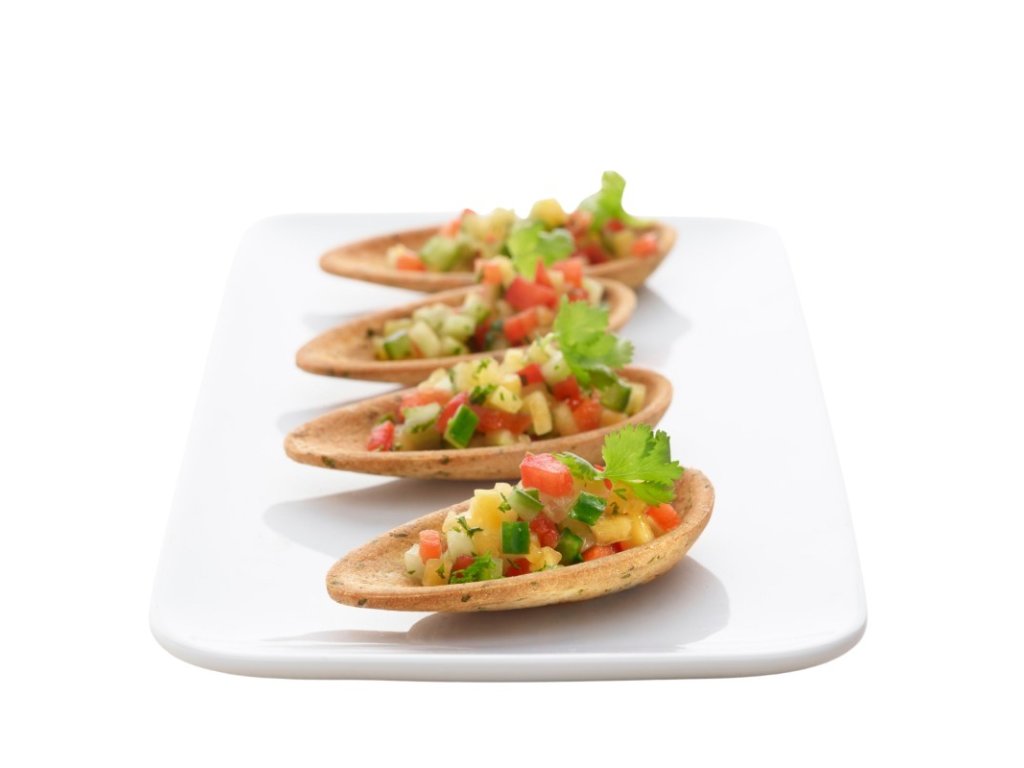 Je vhodná na studené aj mierne teplé plnky, pričom zostáva chrumkavá a drží tvar. Svojou jemnou zelenou farbou a bylinkovou arómou pozdvihne každý cateringový stôl, tapas menu alebo ochutnávku.