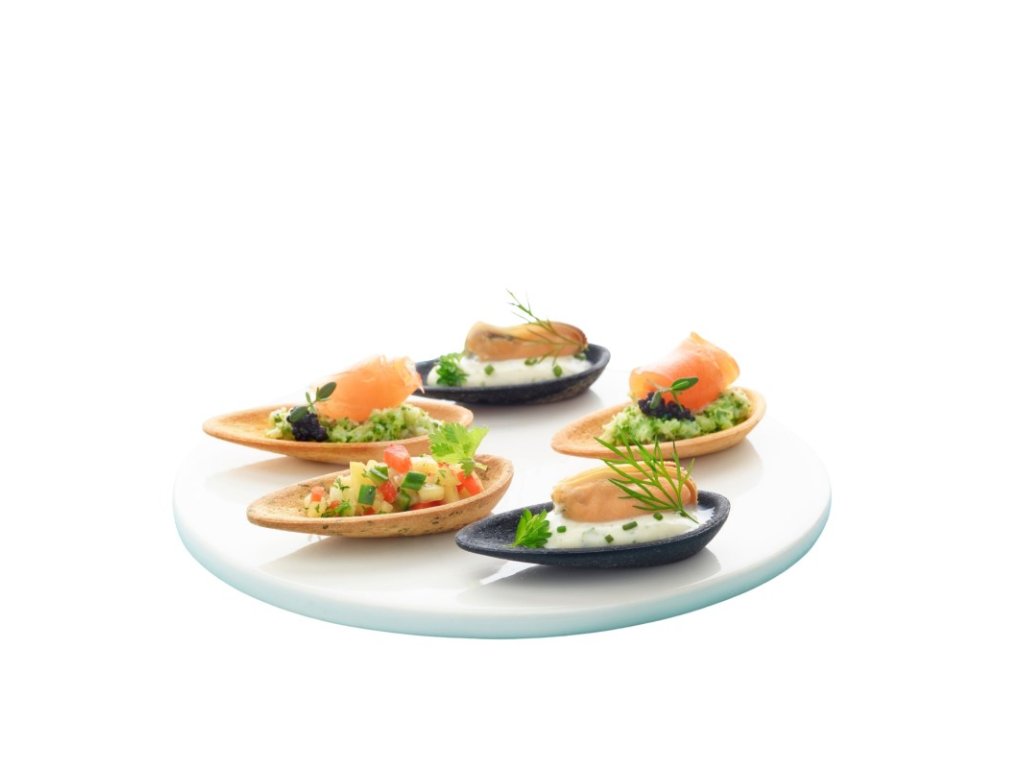 Petržlenová tapas mušla je originálny a výrazne vizuálny prvok pre moderné servírovanie jednohubiek a tapas. S priemerom 65 mm ponúka dostatok priestoru na nápadité plnky a vďaka jemnej chuti byliniek krásne ladí s rôznymi surovinami. Cesto obsahuje 20 % maslového tuku a skutočnú petržlenovú vňať, ktorá dodáva mušli charakter a svieži tón.