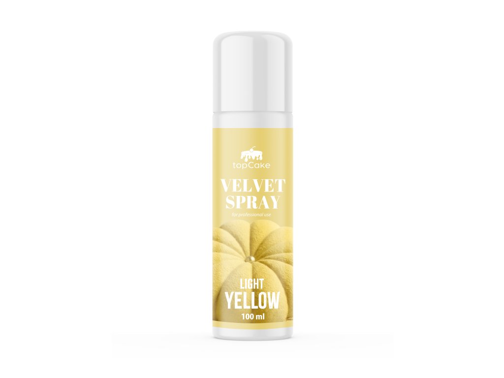 Doprajte svojim dezertom výnimočný vzhľad a nechajte ich zažiariť dokonalým zamatovým efektom. topCake velvet sprej Žltý je profesionálny cukrársky sprej, ktorý mení obyčajné torty a dezerty na vizuálne pôsobivé cukrárske diela. Je určený pre všetkých, ktorí chcú spojiť precíznu dekoráciu, moderný dizajn a luxusný vzhľad.